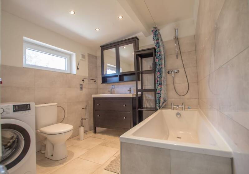 Op de eerste verdieping bevinden zich 2 slaapkamers, waarvan een met dakterras, en een luxe badkamer met bad en tweede toilet. Er is een bergzolder welke bereikbaar is middels een vlizotrap.